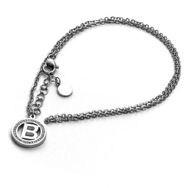 4US Cesare Paciotti Gioielli, женское колье из стали с белыми стразами, с подвеской в ​​виде букв N, B, T, P, V, длина 42 см. + 3 см. by Reduction, Коллекция Pop LETTERING