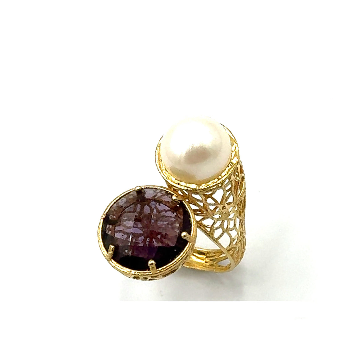 Anello Contrariè Perla e Ametista