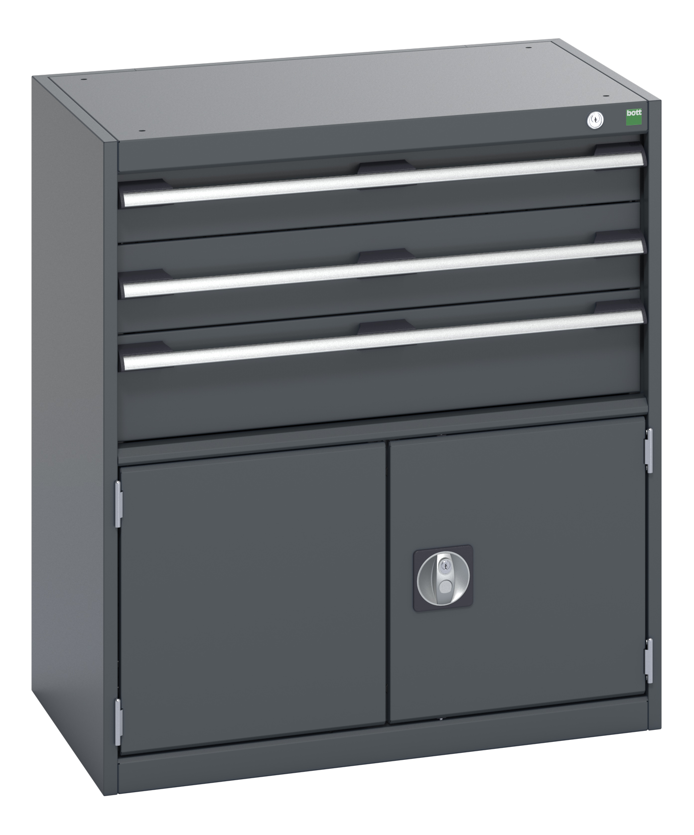 Напольный шкаф Bott с 2 дверцами из листовой стали, 800 x 525 x 900 мм, 3 ящика