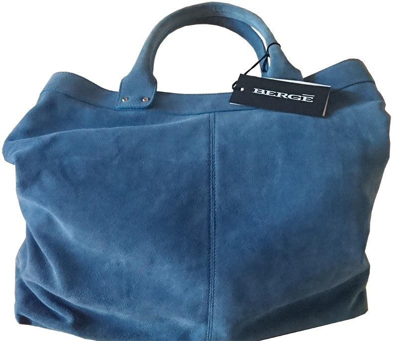 Сумка Bergè из светло-голубой замши, 100% ручная работа, производство Италия, внутренняя отделка из ткани, с одним карманом на молнии и двумя карманами для мобильного телефона, застежка на пуговицах с магнитом, длина 40 см, глубина 10 см, высота 35 см — с оригинальным итальянским сертификатом качества, коллекция Artemisia