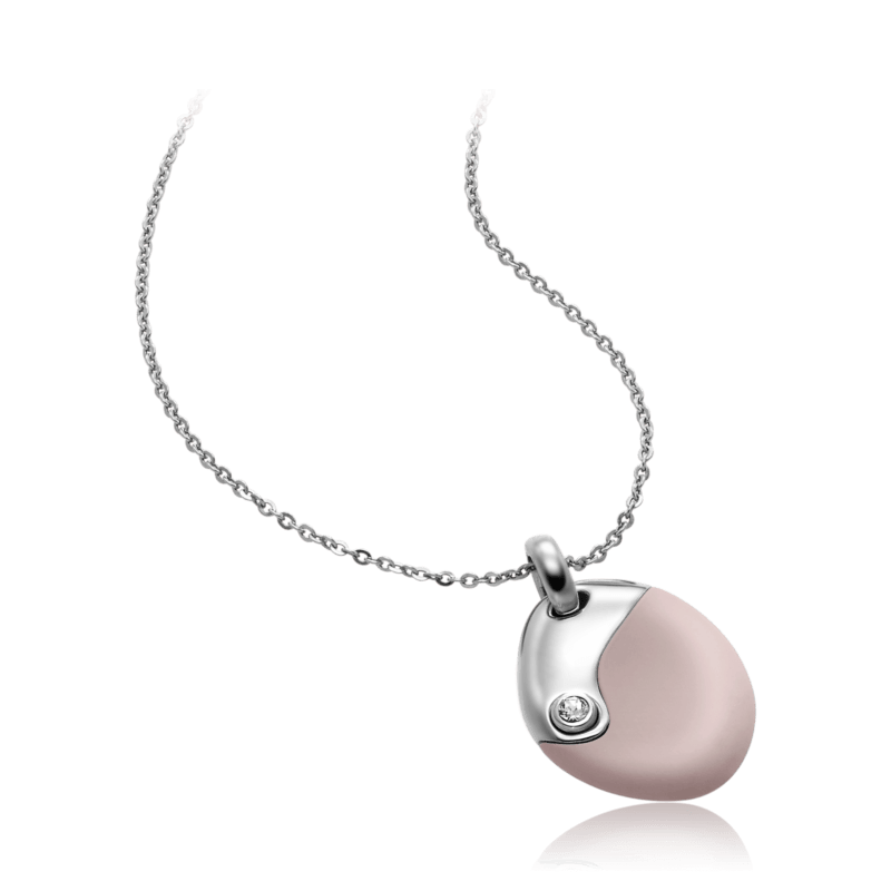 Колье Breil Sense of Touch с подвеской из полированной стали, со вставкой Soft Touch пудрово-розового цвета, украшенной блестящим кристаллом Сваровски. Оригинальный дизайн и безграничная элегантность TJ1669