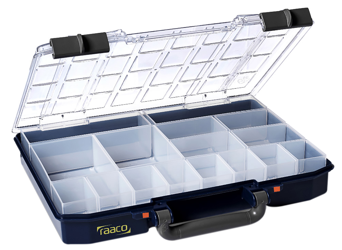 Модульный контейнер Raaco PP, 16 регулируемых отделений, 57 x 337 x 278 мм, прозрачная крышка