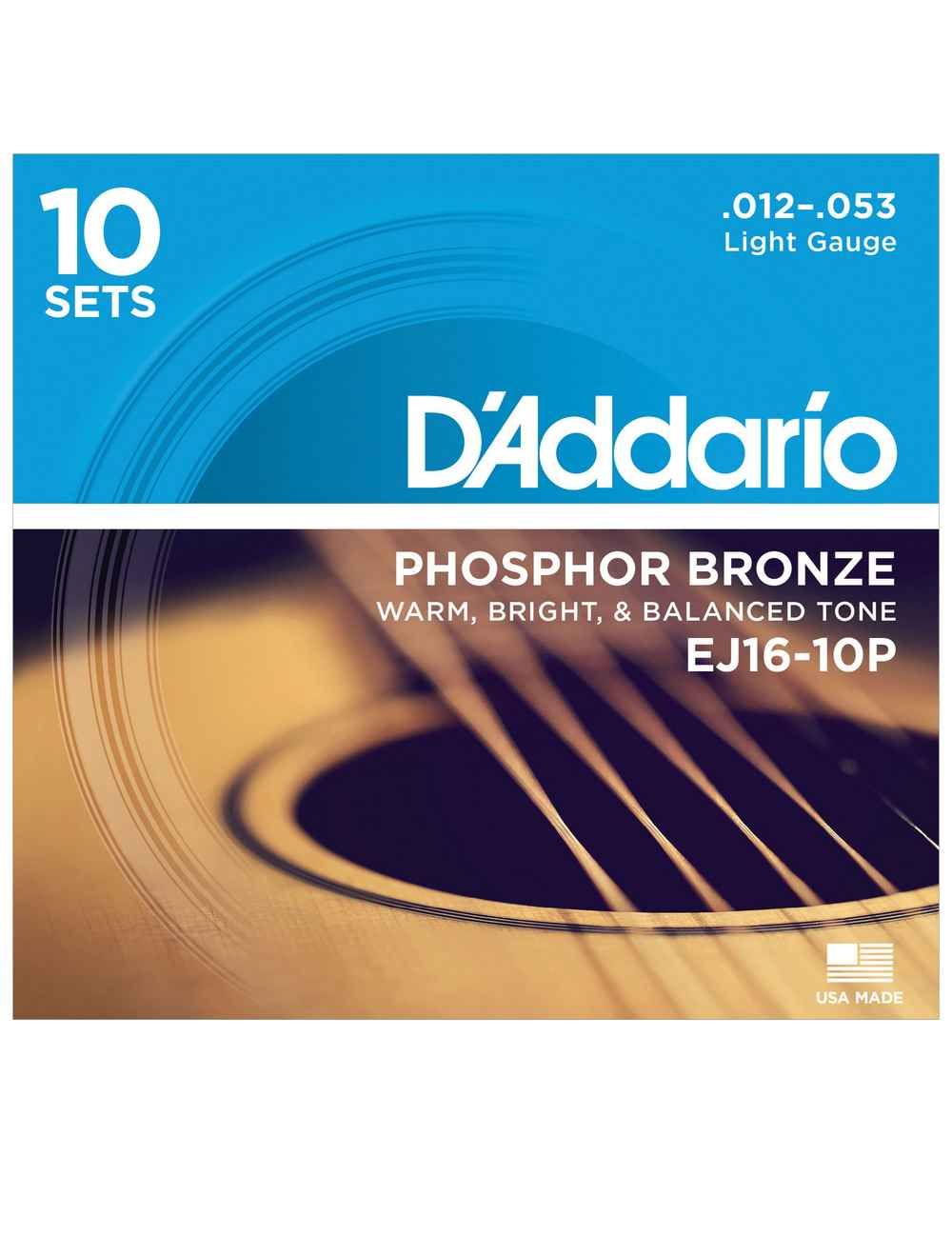 Струны D’Addario для акустической гитары с фосфорной бронзой, 3 шт.