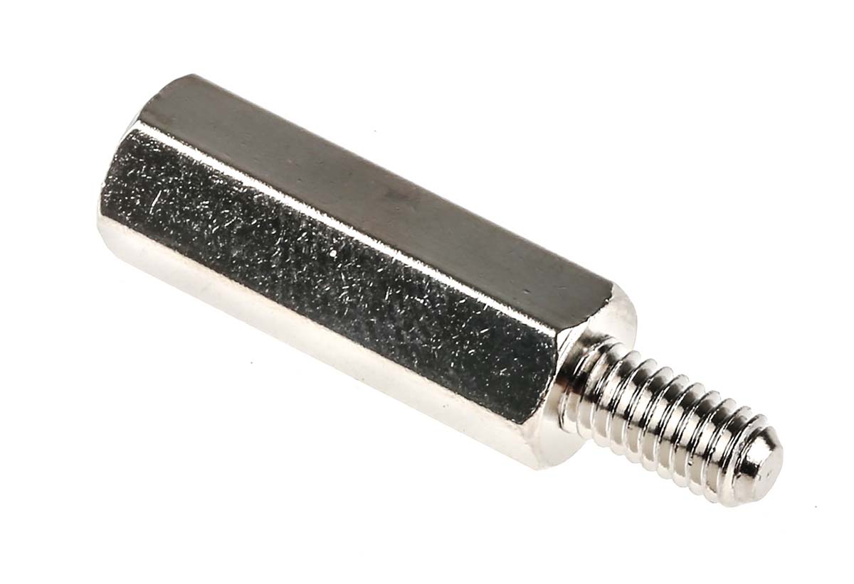 Проставка с шестигранной резьбой, наружная/гнездовая, из никелированной латуни, длина 20 мм, M4 x M4