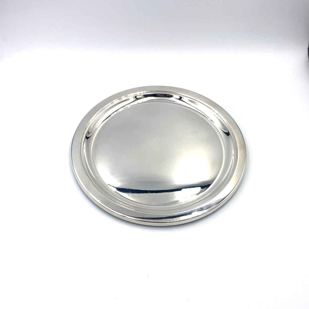 Круглый поднос из сицилийского серебра 800 пробы с изысканным декором в английском стиле, без ручек