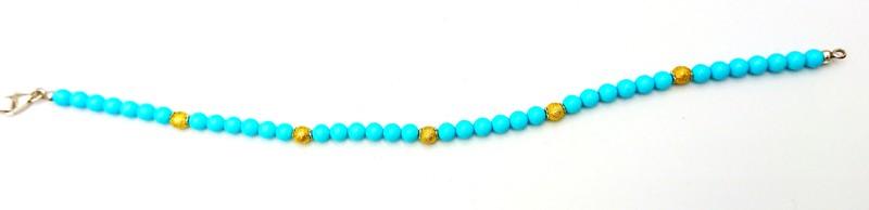 Золотой Art Gioielli, женский браслет из двухцветного серебра 925 пробы, с золотистыми серебряными шариками и бирюзовой пастой, застежка-карабин TBR001/T