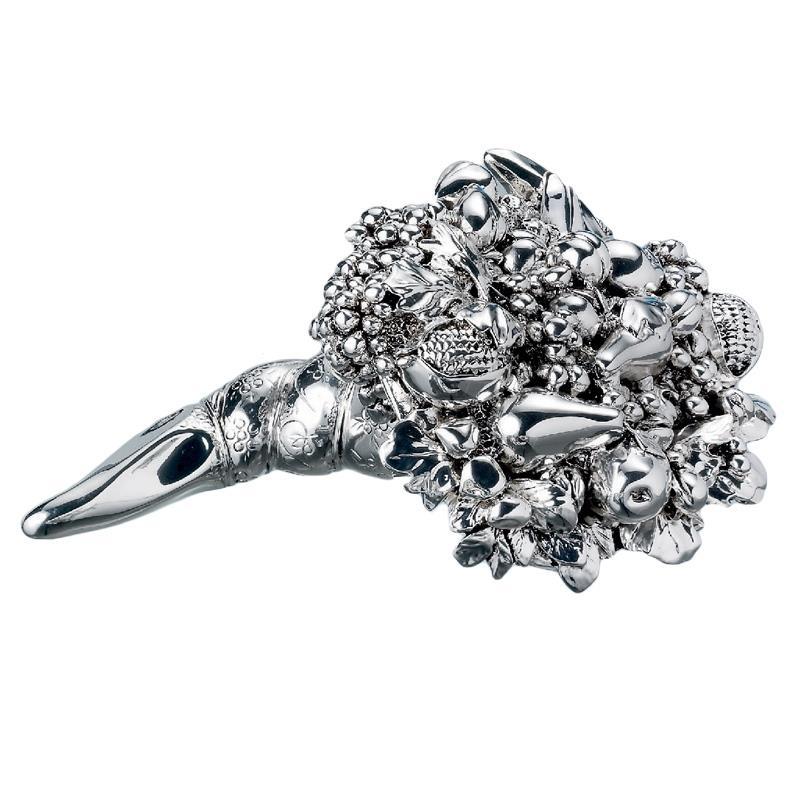 Valenti Argenti Большой рог изобилия из посеребренной смолы с монетами и цветными элементами, размер 13 см. ВА/R1719R