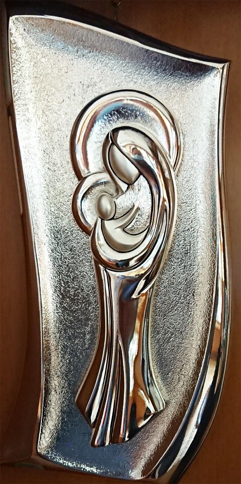 Священное панно Valenti & Co, Мадонна с Младенцем, ламинированное серебро, спинка из дерева и белого бархата, размер 15×38 см VA/R18001