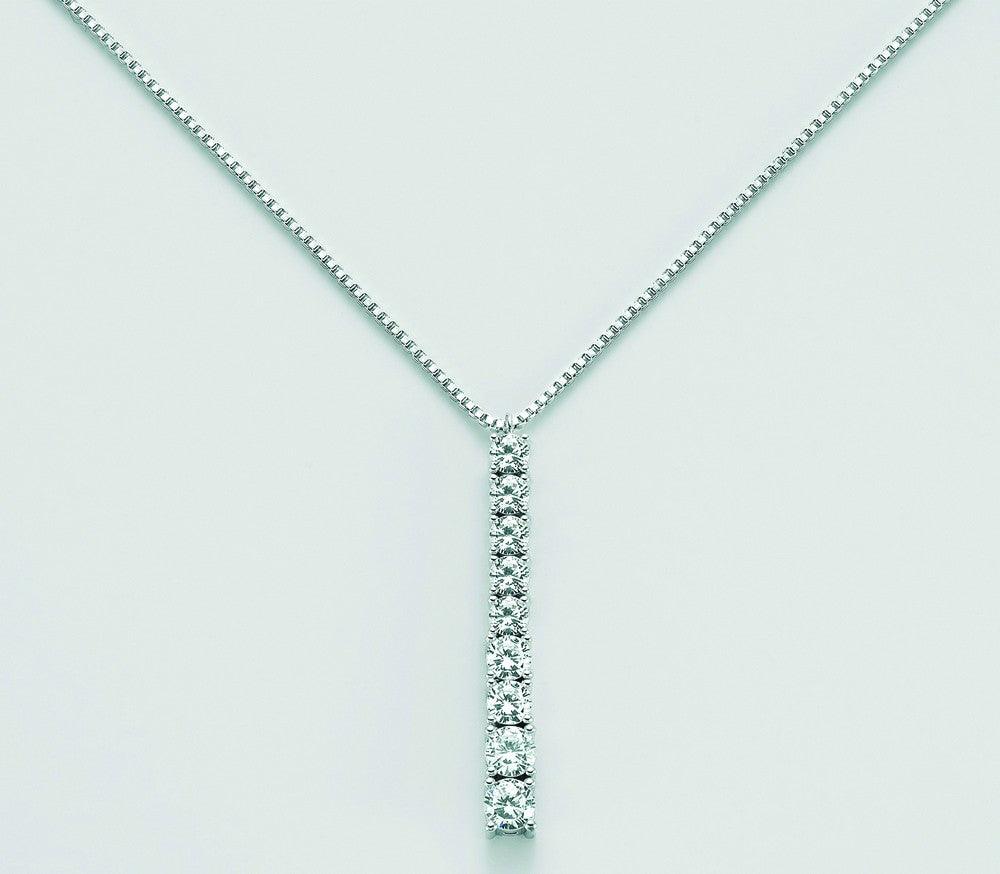 Базовое женское колье Kiara Gioielli из латуни серебристого цвета, подвеска с белыми цирконами длиной 3,5 см, цепочка венецианской модели, максимальная длина 45 см, оснащена кольцами для укорочения и удлинения, застежка-карабин KCLD3849B