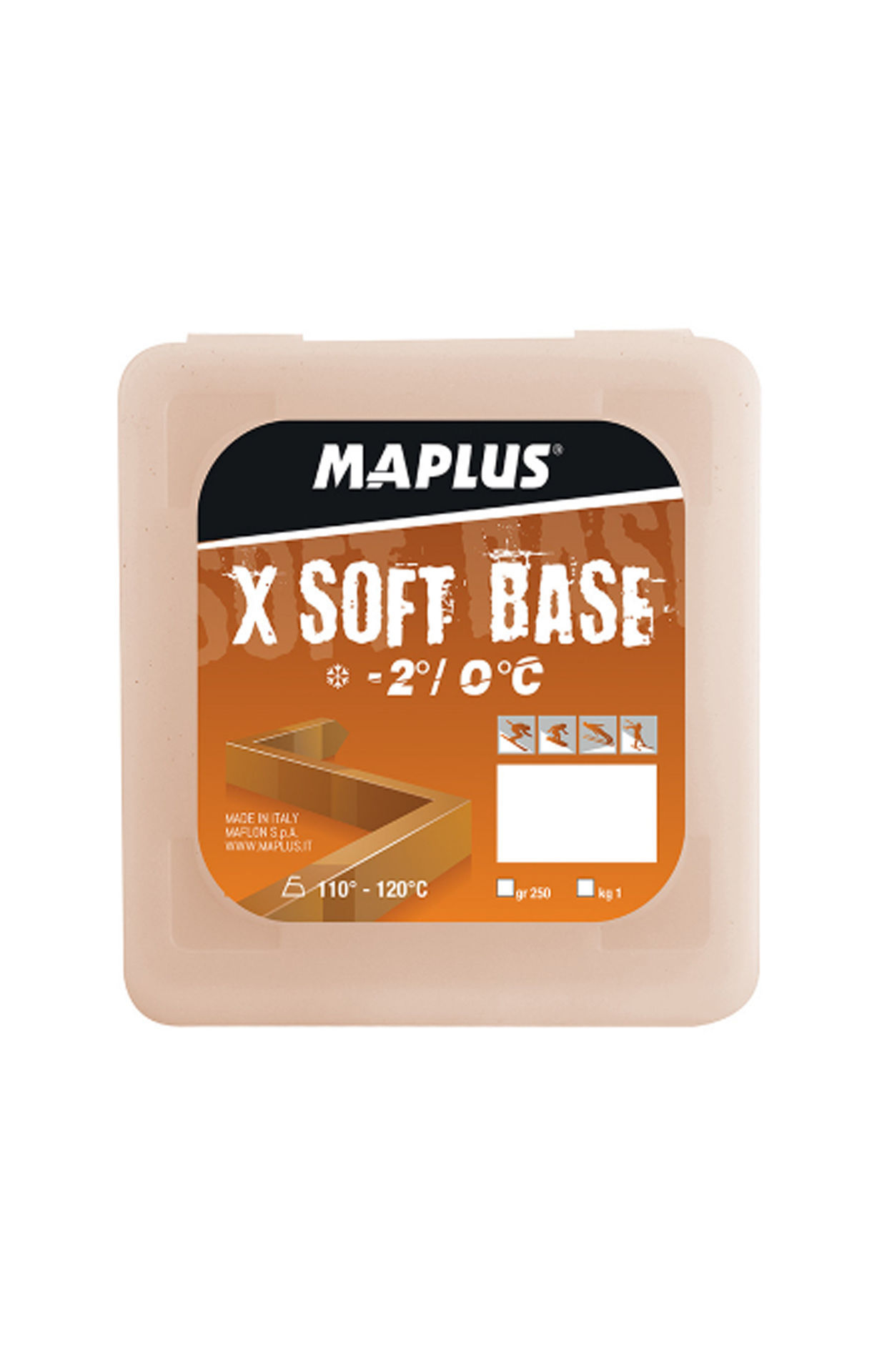 КУПИТЬ ОНЛАЙН MAPLUS WAX -2°/0°C X-SOFT BASEXSOFT BASE Формат: 250 г — 1 кг Любой тип снега Температура снега: -2°/0°C Температура утюга: 110°/120°C Твердый парафин на основе для использования со снегом от -2° до 0°C. Это превосходный базовый продукт для насыщения и защиты гоночных баз. Имеет температуру плавления 48°C. Поэтому это оптимальный продукт для горячего пропитывания оснований термомешком или термоодеялом. Перейти к товаруMAPLUS WAX -2°/ 0°C X-SOFT BASE