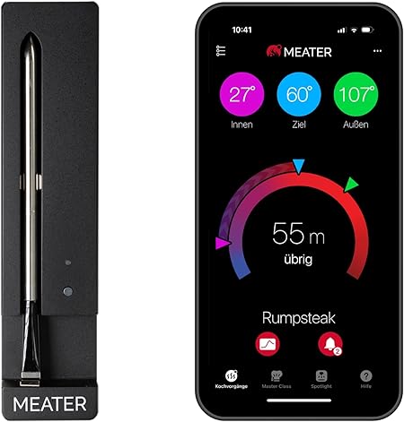 Умное приготовление: легко контролируйте процесс приготовления с помощью приложения MEATER, которое предоставляет обновления и рекомендации по приготовлению в режиме реального времени. ДОСТУПНОЕ КАЧЕСТВО: наслаждайтесь высоким качеством, которым славится MEATER, теперь по доступной цене. Идеально подходит для начала приготовления пищи или является отличным подарком для тех, кто любит готовить или готовить на гриле. НАДЕЖНОЕ ЗАРЯДНОЕ УСТРОЙСТВО: Входящее в комплект пластиковое зарядное устройство легкое, прочное и предназначено для повседневного использования. Таким образом, ваш термометр всегда готов к использованию. Беспроводное соединение на большом расстоянии: благодаря радиусу действия Bluetooth до 50 метров вы можете контролировать процесс приготовления пищи в любой точке вашего дома. Система управляемого приготовления: приложение шаг за шагом проведет вас через процесс приготовления и, таким образом, обеспечит идеальные результаты даже для новичков. МНОГОФУНКЦИОНАЛЬНОСТЬ: идеально подходит для приготовления всех видов мяса, птицы и рыбы, будь то приготовление на гриле, запекание, копчение или запекание. ДВОЙНОЙ ДАТЧИК ТЕМПЕРАТУРЫ Измеряет как внутреннюю температуру мяса, так и температуру окружающей среды для точного контроля процесса приготовления. В комплект входит 1 батарейка ААА. Для зарядки зонда в черном зарядном устройстве требуется только одна батарейка ААА. Изящный дизайн: компактный и элегантный MEATER SE удобно впишется в любой интерьер кухни, дома или сада. Показать больше › Посмотреть дополнительную информацию о продукте
