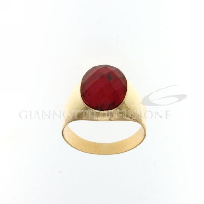 Кольцо из желтого золота, в коробке, с овальным ограненным красным камнем — размер камня 1,40х1,10 см, гр.7,70, размер 21