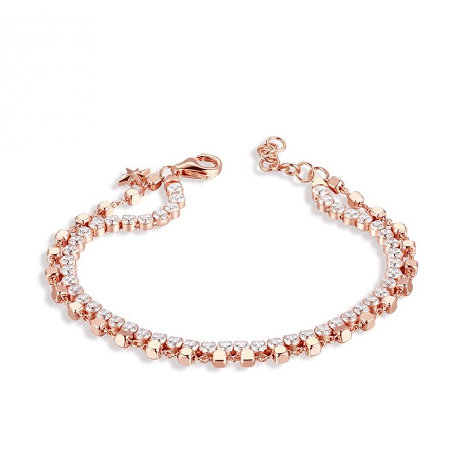 Rosato Gioielli, Модульный женский браслет с двойной цепочкой, гальваническое серебро 925 пробы, розовое золото и белый цирконий, размер 18,5 см. Коллекция историй