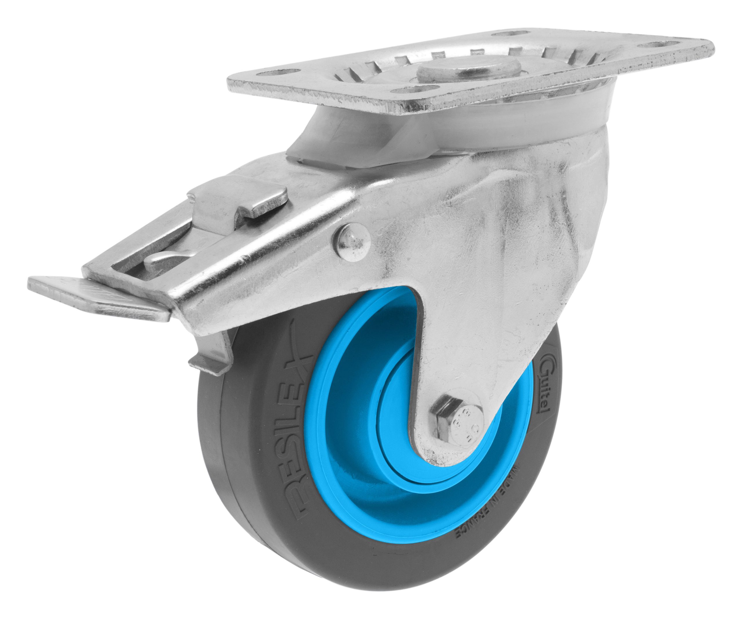 Поворотное колесо тележки Guitel Hervieu с тормозом из эластичной резины RESILEX, Ø 100 мм, 200 кг