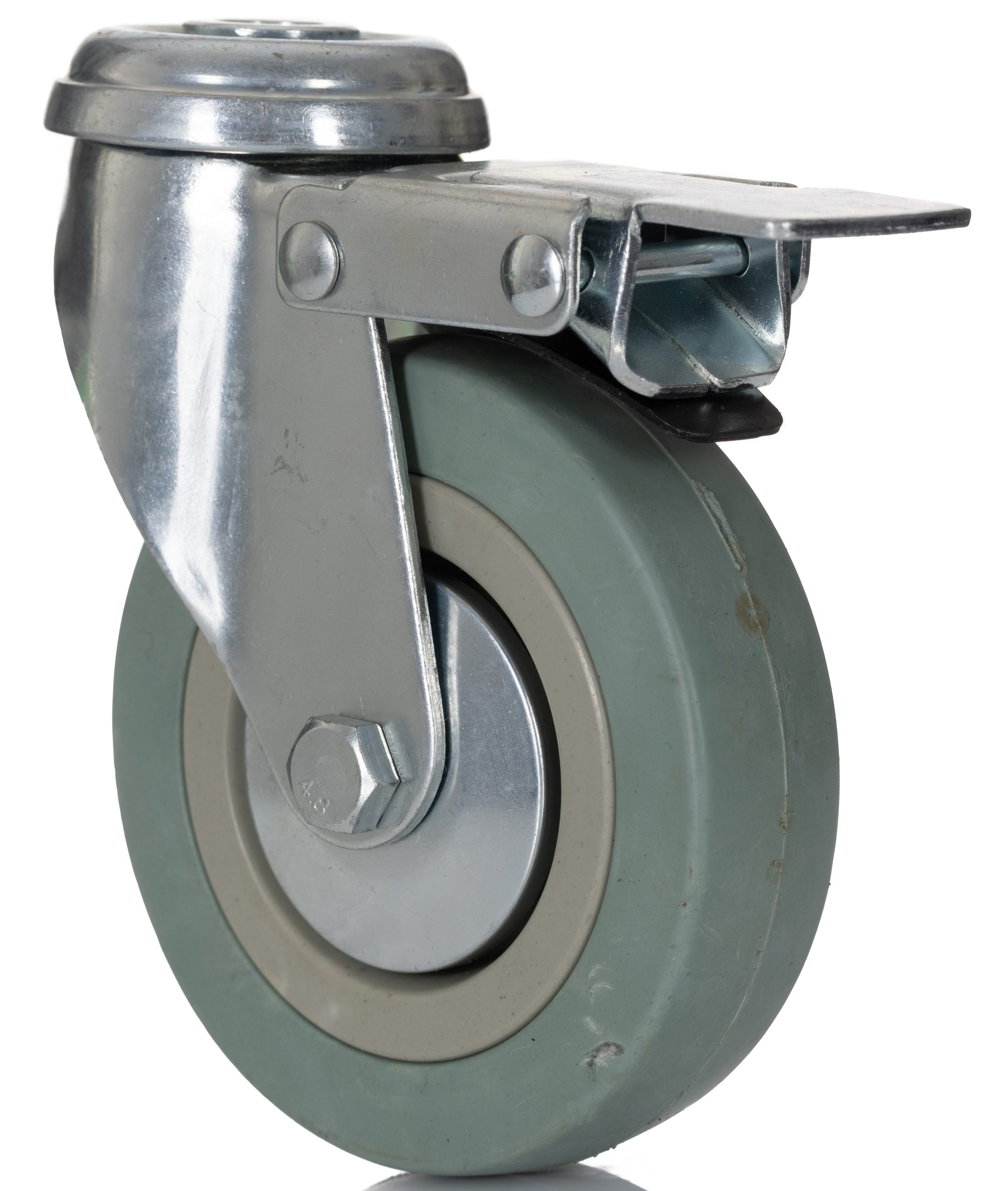 RS PRO Резиновое поворотное колесо тележки с тормозом, Ø 100 мм, 80 кг