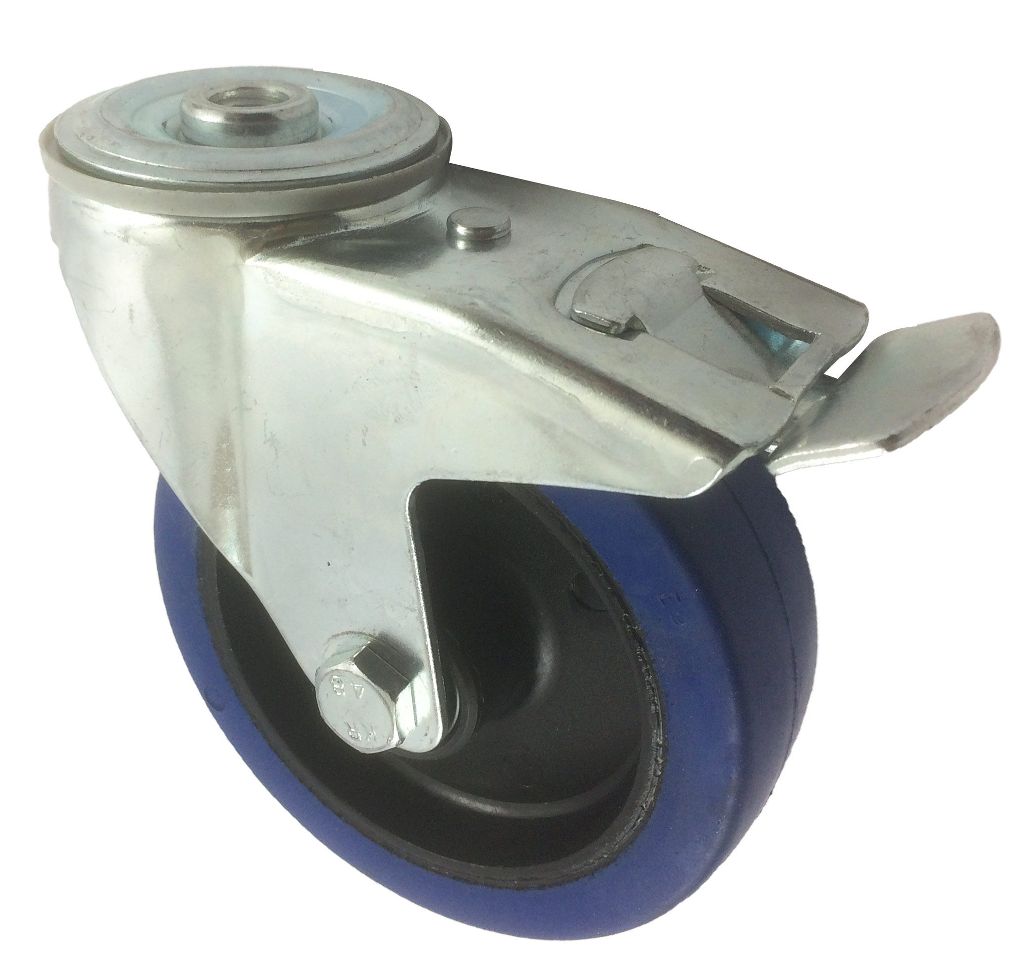 RS PRO Резиновое поворотное колесо тележки с тормозом, Ø 125 мм, 150 кг