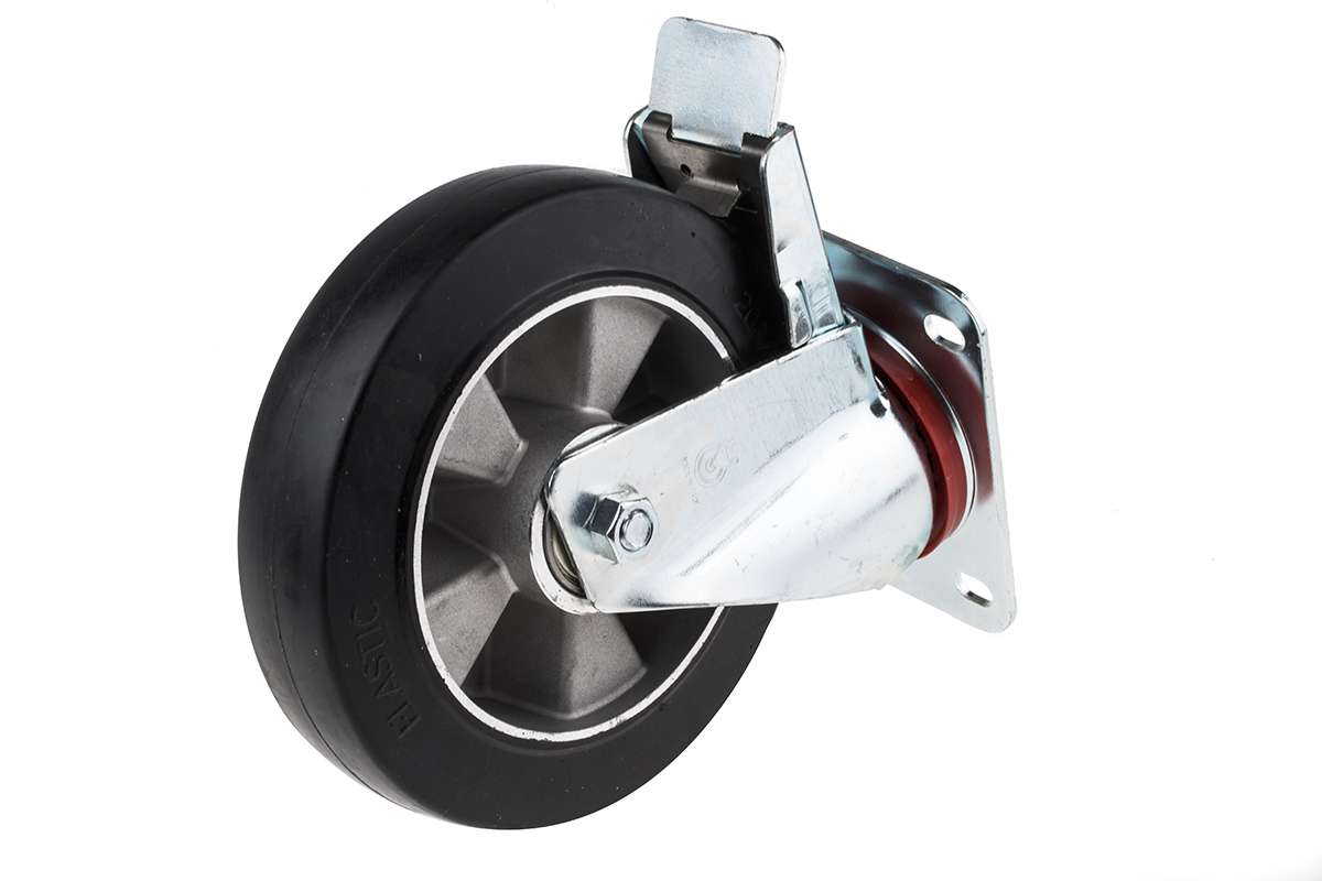 RS PRO Резиновое поворотное колесо тележки с тормозом, Ø 200 мм, 460 кг