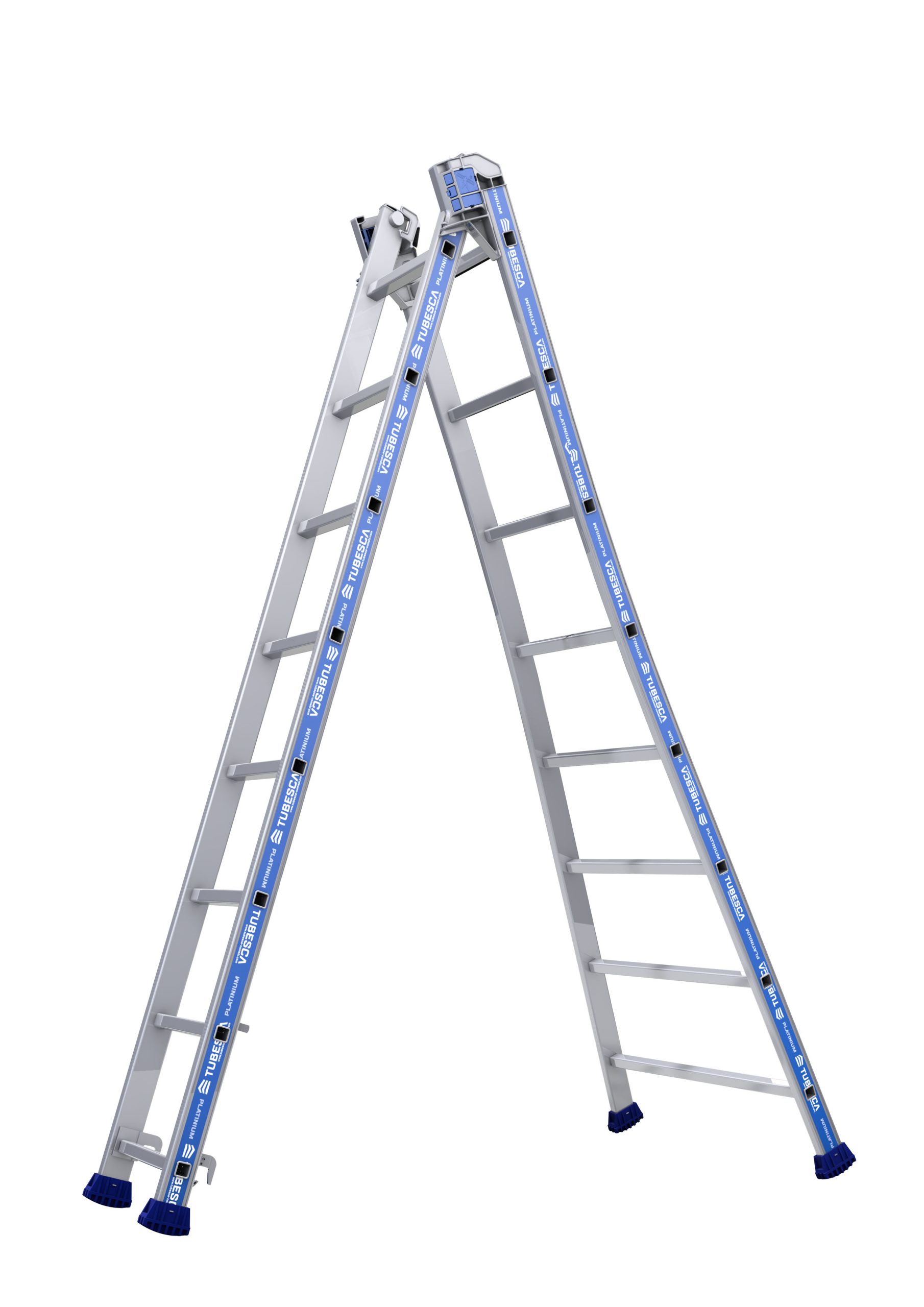 Scala TUBESCA a 16 gradini, apertura 4.04m, alt. piattaforma 8.58m, montanti in Alluminio