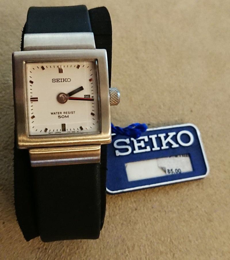 Часы Seiko, квадратный корпус из стали Only Time for Woman, белый циферблат, дата, ремешок из черной кожи, водонепроницаемость 50 Мт, кварцевый механизм SWG053P1