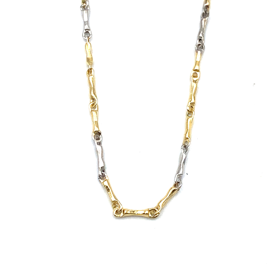 Двухцветное золотое колье из костяной сетки