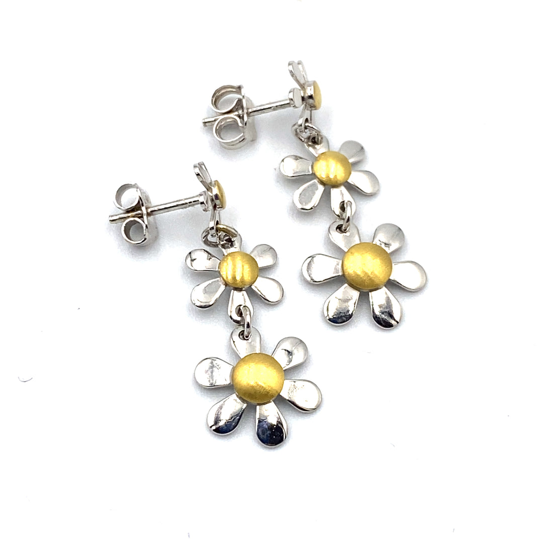 Двухцветные золотые серьги с цветами