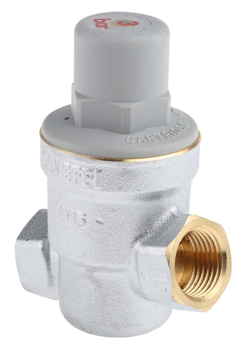 Редукционный клапан RS PRO из хромированной латуни, макс. 6 бар, макс. 2 л/с, резьбовое соединение с внутренней резьбой 1/2 дюйма