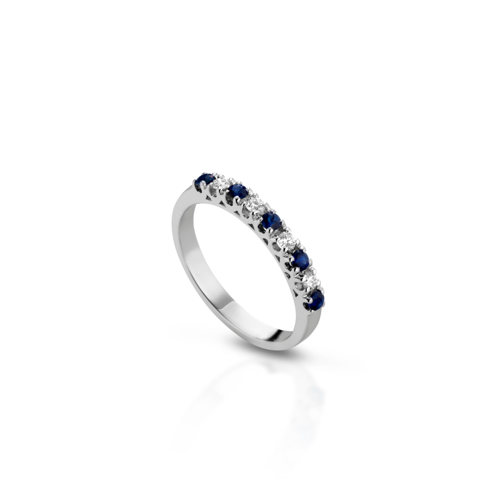 Кольцо Veretta из белого золота 2,45 г Ювелирные изделия Clesi с бриллиантами 0,12 карата VS-G И сапфирами 0,23 карата