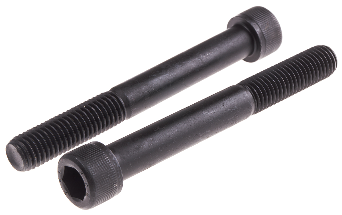 RS PRO Самонабирающийся винт с шестигранной головкой из черной стали, резьба M12 x 100 мм