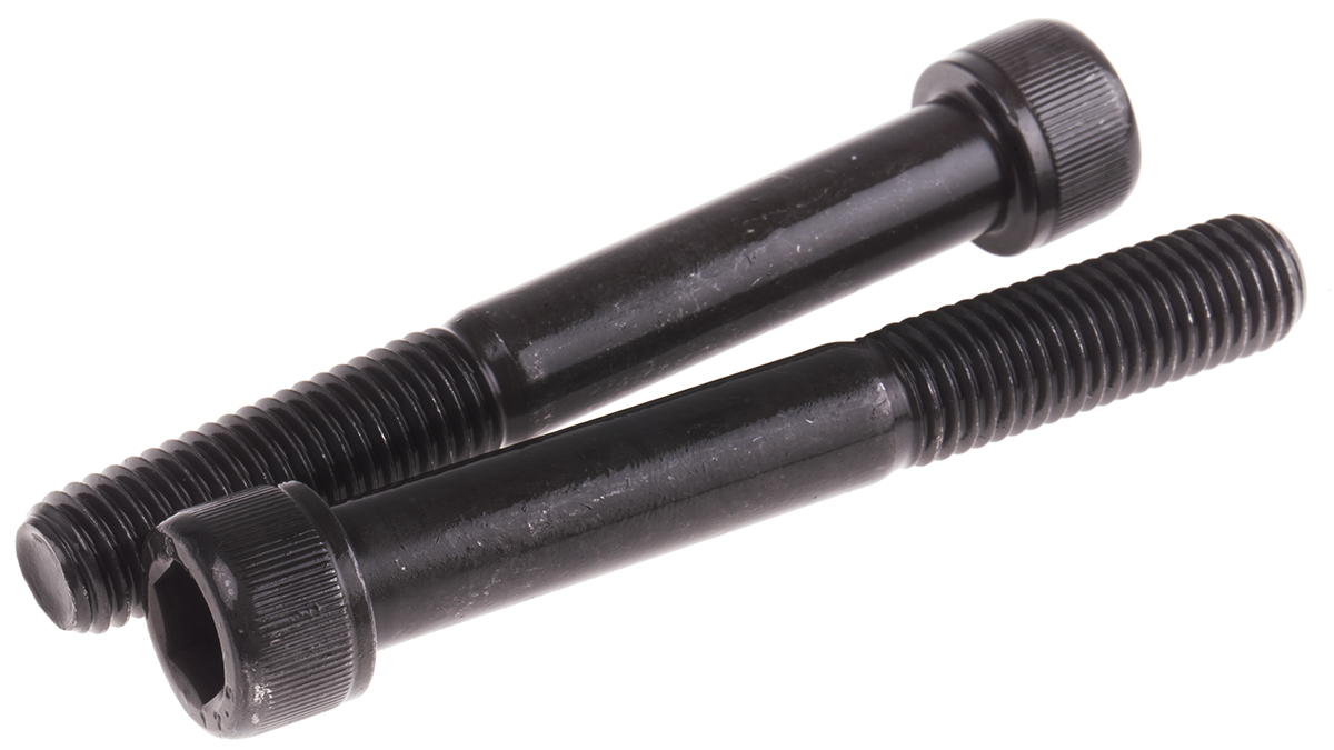 RS PRO Самонабирающийся винт с шестигранной головкой из черной стали, резьба M12 x 90 мм