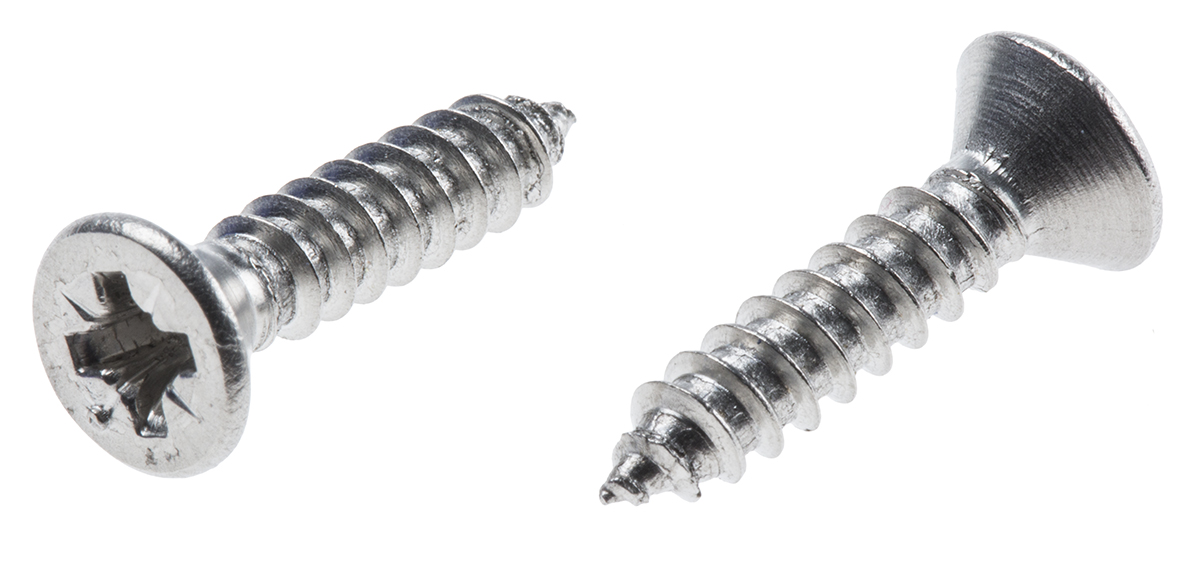 RS PRO Саморез с потайной головкой из нержавеющей стали, 8 резьб, L 19 мм, направляющая Pozidriv