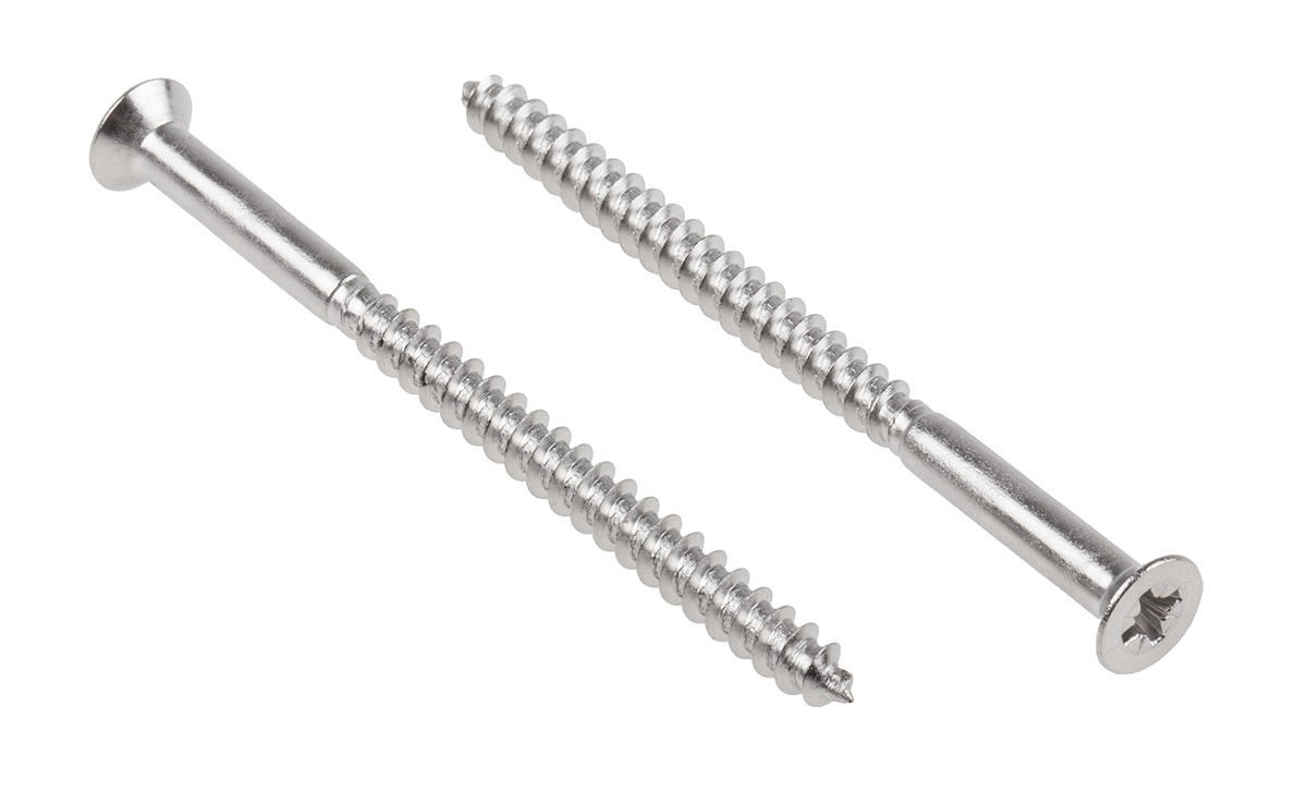 RS PRO Шуруп с потайной головкой из нержавеющей стали, 75 мм, резьба 5 мм, направляющая Pozidriv