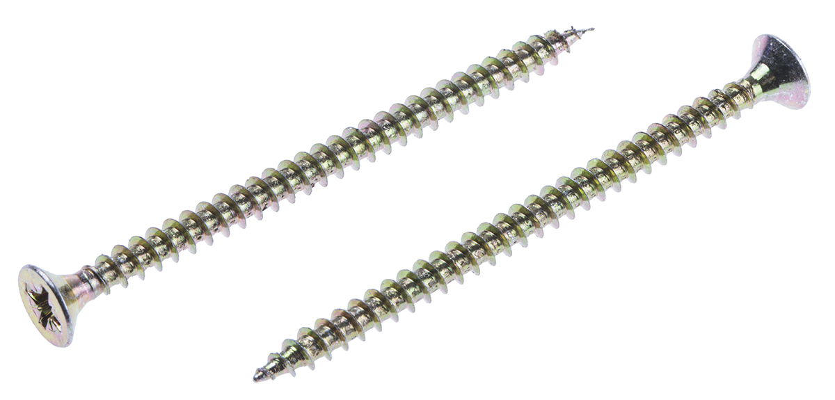 Шуруп с потайной головкой, пассивированная желтая сталь, оцинкованная RS PRO 70 мм, резьба 4,5 мм, направляющая Pozidriv