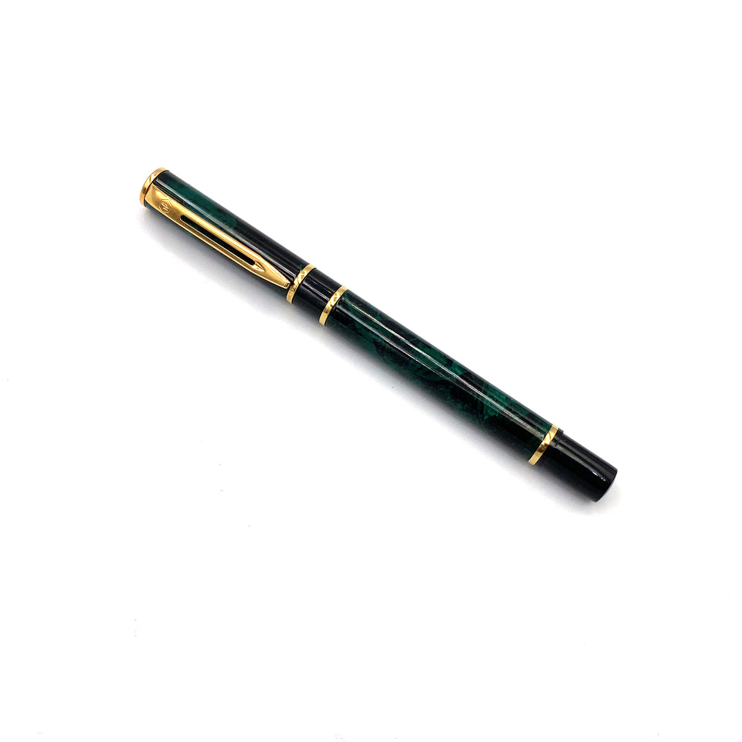 Перьевая ручка Waterman Luxury, черно-зеленый крапчатый двухцветный лакированный корпус и колпачок с золотыми элементами, золотое перо W18365992