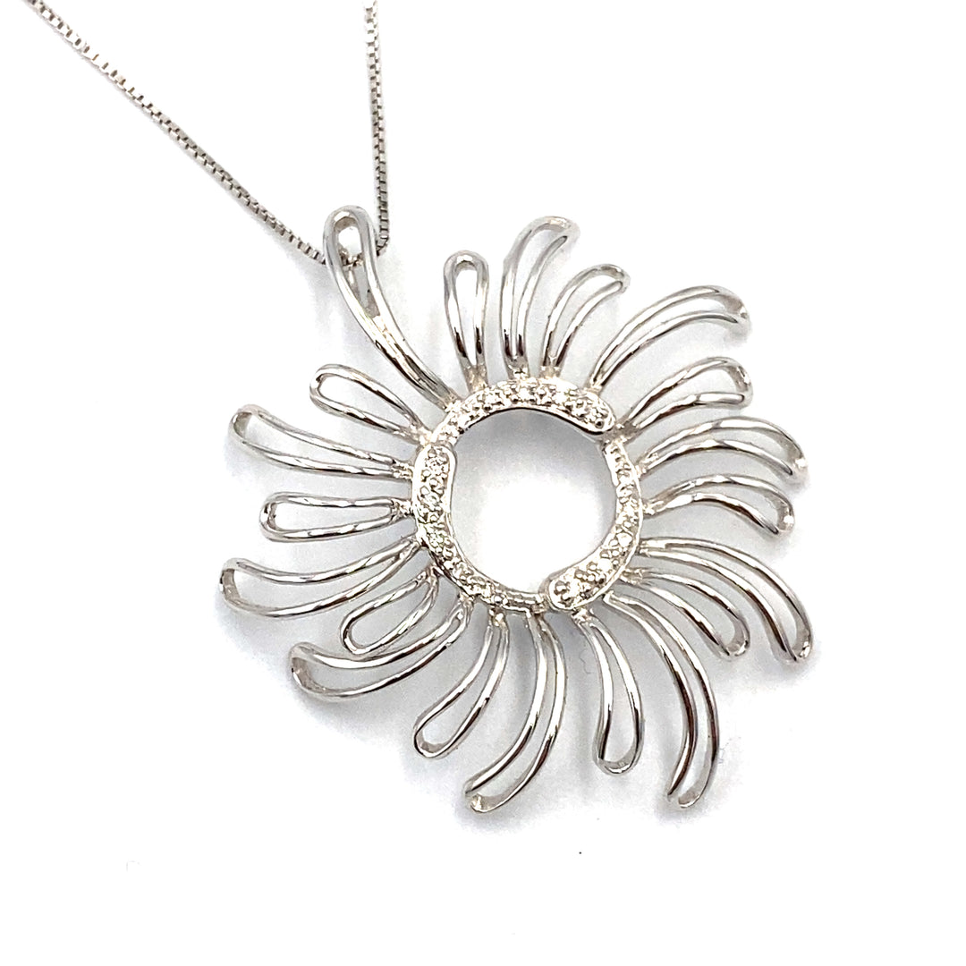 Женское золотое ювелирное колье из белого золота 750/1000 пробы 18 карат с подвеской-солнцем в окружении бриллиантов 0,80 карата, вес 6,80 гр.
